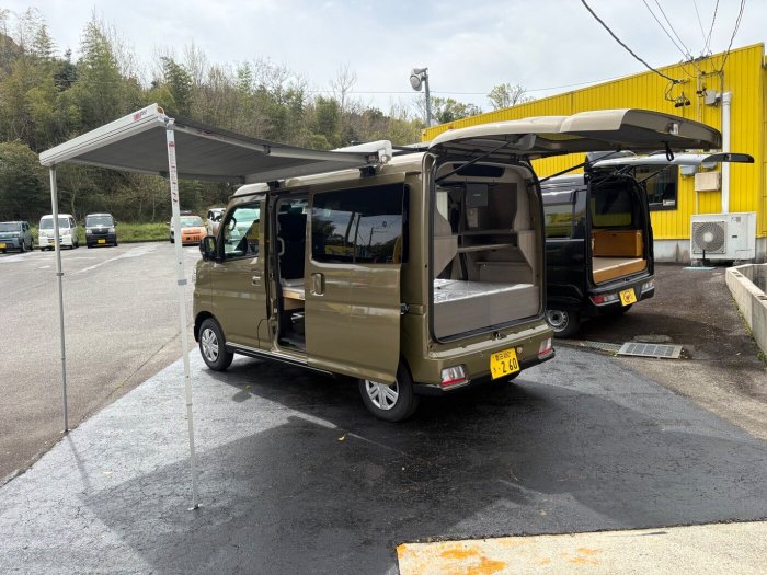 軽バンをベースにしたコンパクトなキャンピングカーで、ちょっとした旅や気軽なアウトドアを楽しめるのが魅力です!!