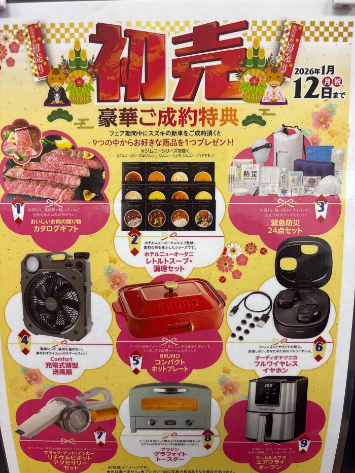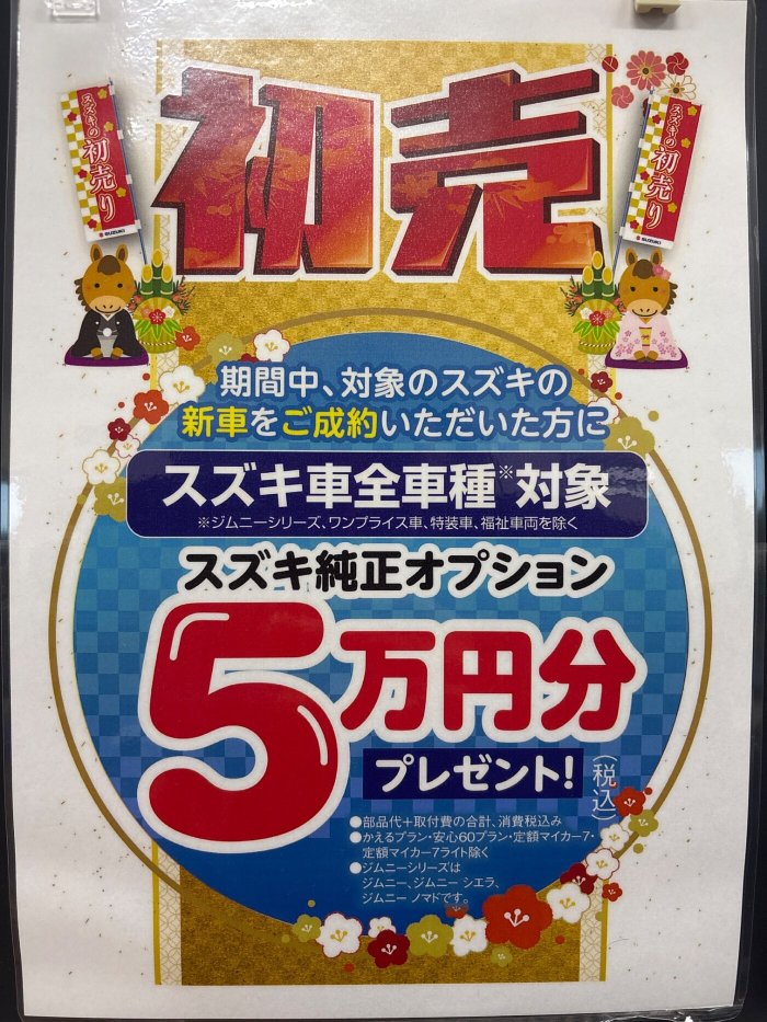 店頭では、スズキの初売りをやっております!