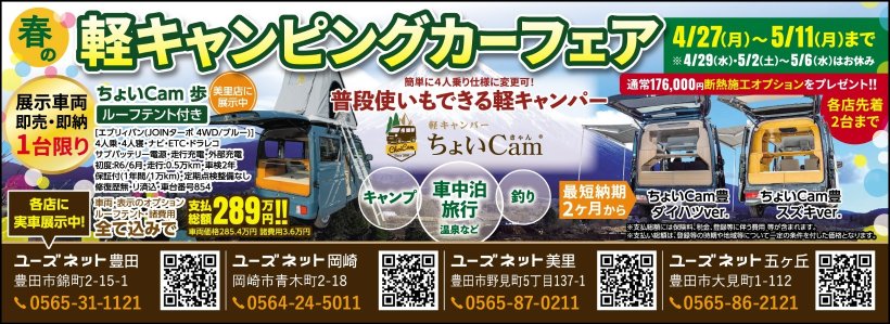 【4/27~5/11】ユーズネット各店で「春の軽キャンピングカーフェア」開催!